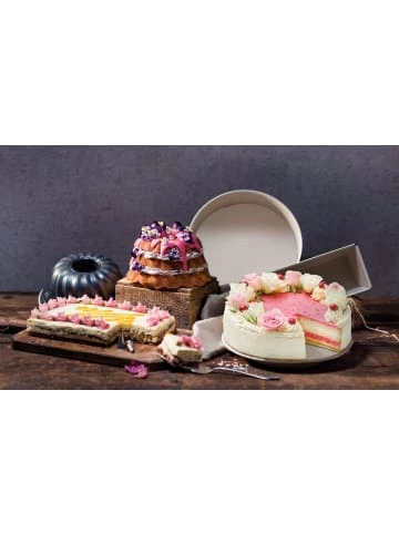 Dr. Oetker Backformen-Set 3-tlg. BACK TREND (Menge: 1 x 3er Set)Die Besonderheit der neuen Back Trend Formen ist ihre 2-farbige Antihaft-Beschichtung. Die Farbgestaltung aus Creme und Grau spricht eine moderne Zielgruppe an und ist ein Hingucker in jeder Küche. Hinzu kommt noch, dass die Formen keramisch verstärkt und antihaftbeschichtet sind, wodurch sich auch der feinste Teig spielend leicht aus der Form lösen lässt und die Form sehr langlebig und robust ist. Die Springformen haben einen extra hohen Rand und verfügen zudem über ein optimiertes Schloss in Silber – mit Dr. Oetker Logo Prägung. Die ausgezeichnete Wärmeleitung der qualitativ hochwertigen Backformen sorgt für beste Backergebnisse.Qualität ist das beste Rezept – Backen mit Stil!» Maße ca.: Springform Ø 26 x 8 cm, Gugelhupfform Ø 22 x 11,5 cm, Kastenform 30 x 13 x 7,5 cm» Material: Stahlblech mit keramisch verstärkter Antihaftbeschichtung» Garantie: Made in Germany, 5 Jahre Dr. Oetker Garantie» Leichte Reinigung per HandMit Dr. Oetker vertrauen Sie auf ein Familienunternehmen, welches seit über 125 Jahren einen besonderen Umgang mit seinen Verbrauchern pflegt. Alle Dr. Oetker Backformen und Küchenhelfer werden in der Dr. Oetker eigenen Versuchsküche getestet und zertifiziert. Durch langjährige Erfahrung hinsichtlich Qualität und Gelingsicherheit ist auf die Dr. Oetker Küchenhelfer immer Verlass.