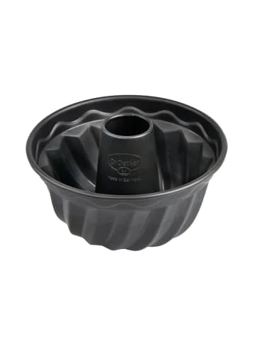 Dr. Oetker Gugelhupfform 18 cm BACK FREUDE CLASSIC (Menge: 1 Stück)Die Dr. Oetker Gugelhupfform ist ein echtes Multitalent! Durch die besondere Teflon- Antihaftbeschichtung lösen sich auch feinste Teige spielend leicht aus der Form. Desweiteren sorgen die dekorativen Verzierungen an der Innenseite der Form, für einen auch optisch gelungenen Gugelhupf. Das veredelte Schwarzblech sorgt außerdem für eine gleichmäßige Bräunung des Inhalts. Auch das anschließende Reinigen geht schnell und mühelos von der Hand.Qualität ist das beste Rezept» Maße: Durchmesser 18 cm, Höhe 11,5 cm» Leichte Reinigung mit der Hand» Hervorragende Antihaft-Eigenschaft» Ausgezeichnete Wärmeleitung» Farbe: schwarzMit Dr. Oetker vertrauen Sie auf ein Familienunternehmen, welches seit über 125 Jahren einen besonderen Umgang mit seinen Verbrauchern pflegt. Alle Dr. Oetker Backformen und Küchenhelfer werden in der Dr. Oetker eigenen Versuchsküche getestet und zertifiziert. Durch langjährige Erfahrung hinsichtlich Qualität und Gelingsicherheit ist auf die Dr. Oetker Küchenhelfer immer Verlass.