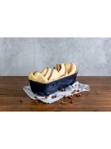 Dr. Oetker Kastenform 30 cm BACK-LIEBE EMAILLE (Menge: 1 Stück)Dank der Kastenform aus dem Dr. Oetker Premium-Sortiment “Back-Liebe Emaille” in den Maßen 31,5 x 7,5 x 13 cm und der schnitt- und kratzfesten Quarz-Emaille-Oberfläche gelingt Ihnen jeder Kuchen. Die glasglatte Form überzeugt durch ihre ausgezeichnete Wärmeleitung, die für gleichmäßige Backergebnisse sorgt. Zudem ist die Form fruchtsäure- und hitzebeständig bis +400°C. Nach dem Gebrauch kann sie ganz einfach in die Spülmaschine gegeben werden. Dr. Oetker gewährt 10 Jahre Qualitätsgarantie auf die Premium-Backform “Made in Germany”. Die sehr hochwertige und schwere Backform in Nachtblau ist ein eleganter und zeitloser Hingucker in Ihrer Küche oder im Buffetschrank – erhältlich im attraktiven Geschenkkarton inklusive Sammelrezeptheft.Qualität ist das beste Rezept» Maße: ca. 31,5 x 7,5 x 13 cm» Material: Stahlblech mit Emaille-Versiegelung» Füllvermögen ca. 1900 ml» Hitzebeständig bis +400°C» Schwere Premium-Qualität» Unser Tipp: Form vor dem Backen gut einfetten und mehlenMit Dr. Oetker vertrauen Sie auf ein Familienunternehmen, welches seit über 125 Jahren einen besonderen Umgang mit seinen Verbrauchern pflegt. Alle Dr. Oetker Backformen und Küchenhelfer werden in der Dr. Oetker eigenen Versuchsküche getestet und zertifiziert. Durch langjährige Erfahrung hinsichtlich Qualität und Gelingsicherheit ist auf die Dr. Oetker Küchenhelfer immer Verlass.» Für Gourmets und Backbegeisterte – für duftende Rühr-Kuchen und saftig-fluffige Brote, die geschmacklich voll überzeugen» Ergebnis: Beste Backergebnisse durch eine ausgezeichnete Wärmeleitung für eine rundum gleichmäßige Bräunung» Lieferumfang: 1 x Kastenform (ca. 31,5 x 7,5 x 13 cm) – in bester Qualität von Dr. Oetker» Material: Stahlblech mit Emaille-Versiegelung – hitzebeständig bis 400°C & spülmaschinengeeignet» MADE IN GERMANY