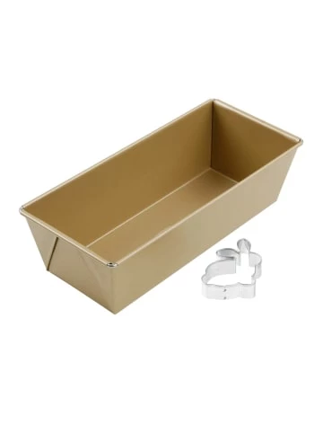 Die schöne goldene Kastenform von Dr. Oetker mit niedlichem Häschen-Ausstecher überzeugt dank ausgezeichneter Wärmeleitung und sehr guter Antihaft-Eigenschaften mit tollen Backergebnissen und ganz besonders kreativen Kuchen. Länge der Kastenform: 25 cm.