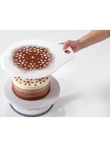 Dr. Oetker Kuchenheber. Damit lässt sich der Kuchen oder die Torte nach dem Backen ganz einfach auf die vorgesehene Platte heben. Der praktische Küchenhelfer kann auch als Verzierschablone verwendet werden. – im Uni Design – Material: 100% Polypropylen