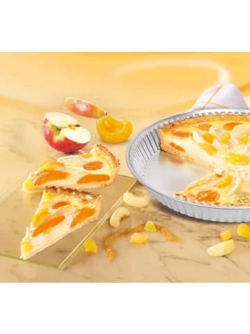 Dr. Oetker Obstkuchenform ∅30 cm CLASSIC (Menge: 1 Stück)Aufgrund hervorragender Eignung der elektrolytisch verzinnten Beschichtung eignet sich die Obstkuchenform besonders für Gasherde. Das verzinnte Weißblech sorgt für eine gleichmäßige Bräunung des Inhaltes, wodurch Ihnen mit der Dr. Oetker Classic Obstkuchenform jeder fruchtige Kuchen gelingen wird. Auch das anschließende Reinigen geht schnell und mühelos von der Hand.Eigenschaften:Maße: Durchmesser: 30cm, Höhe: 3,5cmMaterial: Verzinntes WeißblechBesonders für Gasherde geeignetHitzebeständig bis +230°CGarantie: – made in GermanyMit Dr. Oetker vertrauen Sie auf ein Familienunternehmen, welches seit über 125 Jahren einen besonderen Umgang mit seinen Verbrauchern pflegt. Alle Dr. Oetker Backformen und Küchenhelfer werden in der Dr. Oetker eigenen Versuchsküche getestet und zertifiziert. Durch langjährige Erfahrung hinsichtlich Qualität und Gelingsicherheit ist auf die Dr. Oetker Küchenhelfer immer Verlass.