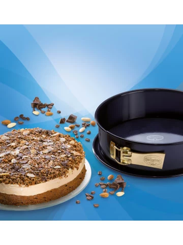 Dr. Oetker Springform Ø 28 cm BACK-LIEBE EMAILLE (Menge: 1 Stück)Die Springform aus dem Dr. Oetker Premium-Sortiment “Back-Liebe Emaille” zeichnet sich aus durch höchste Qualität. Die glasglatte Oberfläche der Emaille-Versiegelung der beiden Böden ist fruchtsäurebeständig und absolut schnitt- und kratzfest, sodass der Kuchen direkt auf dem Boden geschnitten und serviert werden kann. Zudem ist die Form temperaturbeständig bis +230°C. Die ausgezeichnete Wärmeleitung sorgt für eine rundum gleichmäßige Bräunung. Die sehr guten Antihaft-Eigenschaften Springform-Ringes erleichtern das mühelose Entformen. Neben der Funktionalität glänzt die Springform auch mit ihrer brillanten Farbgebung in Blau sowie einem goldenen Springform-Schloss. Nach dem Gebrauch kann der Boden in die Spülmaschine gegeben werden, die Reinigung des Ringes erfolgt ganz einfach per Hand. Dr. Oetker gewährt 10 Jahre Qualitätsgarantie auf die Premium-Backform “Made in Germany”.Qualität ist das beste Rezept» Maße: ca. Ø 28 x 8 cm» Material: Stahlblech mit Emaille-Versiegelung (Boden), Stahlblech mit Antihaftbeschichtung (Ring)» Reinigung: Spülmaschinengeeignet (Boden), leichte Reinigung per Hand (Ring)Mit Dr. Oetker vertrauen Sie auf ein Familienunternehmen, welches seit über 125 Jahren einen besonderen Umgang mit seinen Verbrauchern pflegt. Alle Dr. Oetker Backformen und Küchenhelfer werden in der Dr. Oetker eigenen Versuchsküche getestet und zertifiziert. Durch langjährige Erfahrung hinsichtlich Qualität und Gelingsicherheit ist auf die Dr. Oetker Küchenhelfer immer Verlass.