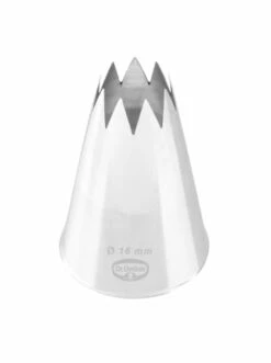 Dr. Oetker Sterntülle 16 mm TÜLLEN-MANUFAKTUR (Menge: 1 Stück)Mit der Sterntülle von Dr. Oetker lassen sich Ihre Backkreationen mit stern-, muschel- oder wirbelförmigen Cremetupfern verzieren und individualisieren. Die smarte Tülle aus hochwertigem Edelstahl mit einem Tüllenöffnungs-Durchmesser von 16 Millimetern ist aus einem Stück gezogen und somit nahtfrei. Sie kann sowohl mit als auch ohne den praktischen Universaladapter (Artikelnr. #3503) verwendet und nach dem Gebrauch zum Reinigen in die Spülmaschine gegeben werden. Diese Spritztülle ist zudem sehr gut dafür geeignet, dem Cupcake eine Art “Softeis-Look” zu geben. Dafür mit gleichmäßigem Druck arbeiten – so kommt die Kontur richtig zur Geltung.Eigenschaften:– Maße ca.: 3,5 x 5 x 3,5 cm– Perfekt zum Verzieren und Dekorieren– passend mit und ohne Universaladapter– SpülmaschinengeeignetMit Dr. Oetker vertrauen Sie auf ein Familienunternehmen, welches seit über 125 Jahren einen besonderen Umgang mit seinen Verbrauchern pflegt. Alle Dr. Oetker Backformen und Küchenhelfer werden in der Dr. Oetker eigenen Versuchsküche getestet und zertifiziert. Durch langjährige Erfahrung hinsichtlich Qualität und Gelingsicherheit ist auf die Dr. Oetker Küchenhelfer immer Verlass.