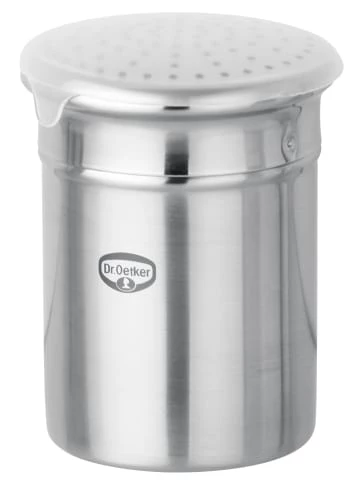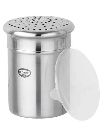 Dr. Oetker Zuckerstreuer PROFI (Menge: 1 Stück)Der Zuckerstreuer aus der Dr. Oetker Zubehör-Serie “Profi” aus rostfreiem Edelstahl eignet sich ideal zum dekorativen und schnellen Bestäuben und Verzieren von Waffeln, Kuchen, Gebäck oder Kaffeespezialitäten. Zudem kann er auch als Zuckerstreuer für Heißgetränke eingesetzt werden. Der Bajonettverschluss sorgt dabei für die sichere Verbindung von Deckel und Behälter, denn sie werden durch Ineinanderstecken und entgegengesetztes Drehen verbunden und so auch wieder getrennt. Die transparente Kappe des Streuers schützt den Inhalt vor Feuchtigkeit und Aromaverlust.Eigenschaften:– Maße: Durchmesser: 7 cm, Höhe: 9,5 cm– Material: Edelstahl– Feines Bestäuben und DekorierenMit Dr. Oetker vertrauen Sie auf ein Familienunternehmen, welches seit über 125 Jahren einen besonderen Umgang mit seinen Verbrauchern pflegt. Alle Dr. Oetker Backformen und Küchenhelfer werden in der Dr. Oetker eigenen Versuchsküche getestet und zertifiziert. Durch langjährige Erfahrung hinsichtlich Qualität und Gelingsicherheit ist auf die Dr. Oetker Küchenhelfer immer Verlass.