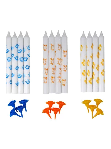 Dr. Oetker 12 Kerzen inkl. 12 Halter DieMaus (Menge: 24-teilig)Mit den Kerzen von Dr. Oetker aus der Serie DieMaus werden köstliche Gebäcke stilvoll präsentiert. Die 12 Kerzen haben einen Durchmesser von 0,5 cm und sind mit den Maus-Motiven Maus, Elefant und Ente gestaltet. Die 12 Kerzenhalter haben eine integrierte Wachsauffangschale. Sie sind ideal zum festlichen Dekorieren von Torten, Kuchen und Cupcakes.Qualität ist das beste Rezept» Maße: ca. Ø0,5 x 6,5 cm» Kerzen: 80 % Paraffine/20 % Stearine, Halter: Kunststoff» Inkl. Halter mit Wachsauffangschale» Zum festlichen Dekorieren von Torten, Kuchen und Cupcakes» Mit Maus-, Enten- und Elefant-Design» Farbe: BuntMit Dr. Oetker vertrauen Sie auf ein Familienunternehmen, welches seit über 125 Jahren einen besonderen Umgang mit seinen Verbrauchern pflegt. Alle Dr. Oetker Backformen und Küchenhelfer werden in der Dr. Oetker-eigenen Versuchsküche getestet und zertifiziert. Durch langjährige Erfahrung hinsichtlich Qualität und Gelingsicherheit ist auf die Dr. Oetker Küchenhelfer immer Verlass.