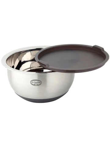 Dr. Oetker Rührschüssel mit Deckel 3 Liter BACK SPASS (Menge: 1 Stück)Diese Rührschüssel von Dr. Oetker lässt keine Wünsche offen. Sie eignet sich zum Rühren, Kühlen und Aufbewahren von bis zu 3 Liter. Der rutschfeste Silikonboden sorgt dabei für einen sicheren Stand. Der Deckel mit Griffen verschließt geruchsneutral, während der flache Schüttrand für einfaches Ausgießen von Flüssigkeiten sorgt. Die Schüssel ist außerdem speisesäurebeständig, spülmaschinengeeignet und hitzebeständig von -18° bis 50°C.Qualität ist das beste Rezept» Maße: Ø 23 cm, Höhe: 12 cm, Volumen: 3 Liter» Material: Edelstahl und Silikon» Farbe: Grau-Braun» SpülmaschinengeeignetMit Dr. Oetker vertrauen Sie auf ein Familienunternehmen, welches seit über 125 Jahren einen besonderen Umgang mit seinen Verbrauchern pflegt. Alle Dr. Oetker Backformen und Küchenhelfer werden in der Dr. Oetker eigenen Versuchsküche getestet und zertifiziert. Durch langjährige Erfahrung hinsichtlich Qualität und Gelingsicherheit ist auf die Dr. Oetker Küchenhelfer immer Verlass.