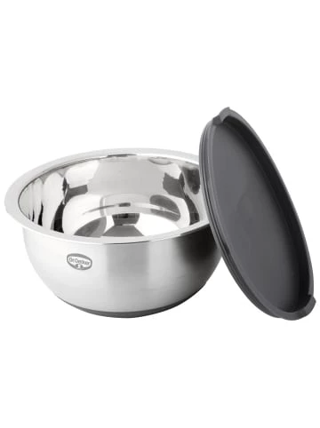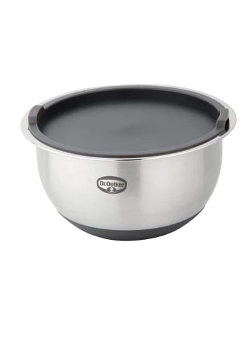 Dr. Oetker Rühr- und Küchenschüssel inkl. Deckel (Menge: 1 Stück)Die Rührschüssel- und Küchenschüssel inkl. Deckel von Dr. Oetker eignet sich ideal zum Rühren, Mixen, Aufbewahren und Kühlen von Lebensmitteln. Die Schüssel aus hochwertigem Edelstahl bietet Platz für etwa 5 l. Dank dem rutschfestem Boden aus Silikon steht die Küchenschüssel beim Rühren sicher und fest auf der Arbeitsoberfläche. Das Material ist beständig gegen Speisesäuren und geschmacks- und geruchsneutral. Mit dem Deckel mit Griffen verschließen Sie die Rührschüssel. Nach Gebrauch kann die stilvolle Schüssel zur Reinigung in die Spülmaschine gegeben werden.Qualität ist das beste Rezept» Temperaturbeständig von -18°C bis +50°C» Füllvermögen: 5 l» Maße: ca. Ø 24 cm, Höhe ca. 13 cm» SpülmaschinengeeignetMit Dr. Oetker vertrauen Sie auf ein Familienunternehmen, welches seit über 125 Jahren einen besonderen Umgang mit seinen Verbrauchern pflegt. Alle Dr. Oetker Backformen und Küchenhelfer werden in der Dr. Oetker-eigenen Versuchsküche getestet und zertifiziert. Durch langjährige Erfahrung hinsichtlich Qualität und Gelingsicherheit ist auf die Dr. Oetker Küchenhelfer immer Verlass.
