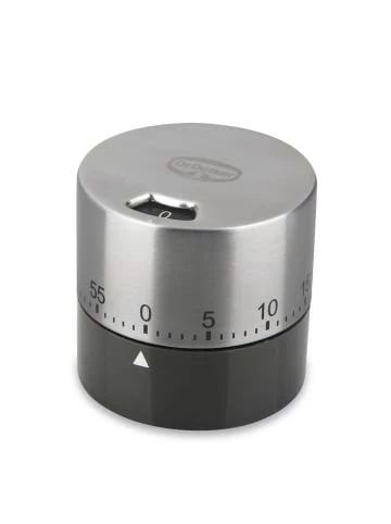 Dr. Oetker Mechanischer Kurzzeitmesser 60 min BACK SPASS (Menge: 1 Stück)Der mechanische Kurzzeitmesser aus Edelstahl und Kunststoff aus der Dr. Oetker Serie “Back-Spaß” ist der ideale Küchenhelfer beim Kochen und Backen. Das präzise Uhrwerk kann auf die Minute genau gestellt werden: Einfach den Wecker im Uhrzeigersinn komplett aufziehen und dann auf die gewünschte Zeit einstellen. Ein extra lautes Alarmsignal weist auf die abgelaufene Zeit hin. Der grau-braun-silberne Zeitmesser funktioniert zuverlässig ohne Batterien und kann dank seiner platzsparenden Maße von circa 6,5 x 6 Zentimeter einfach in der Schublade verstaut werden.Qualität ist das beste Rezept» Größe: Durchmesser ca. 6,5 cm, Höhe ca. 6 cm» Material: Edelstahl & Kunststoff» Farbe: Silber/Grau-BraunMit Dr. Oetker vertrauen Sie auf ein Familienunternehmen, welches seit über 125 Jahren einen besonderen Umgang mit seinen Verbrauchern pflegt. Alle Dr. Oetker Backformen und Küchenhelfer werden in der Dr. Oetker eigenen Versuchsküche getestet und zertifiziert. Durch langjährige Erfahrung hinsichtlich Qualität und Gelingsicherheit ist auf die Dr. Oetker Küchenhelfer immer Verlass.